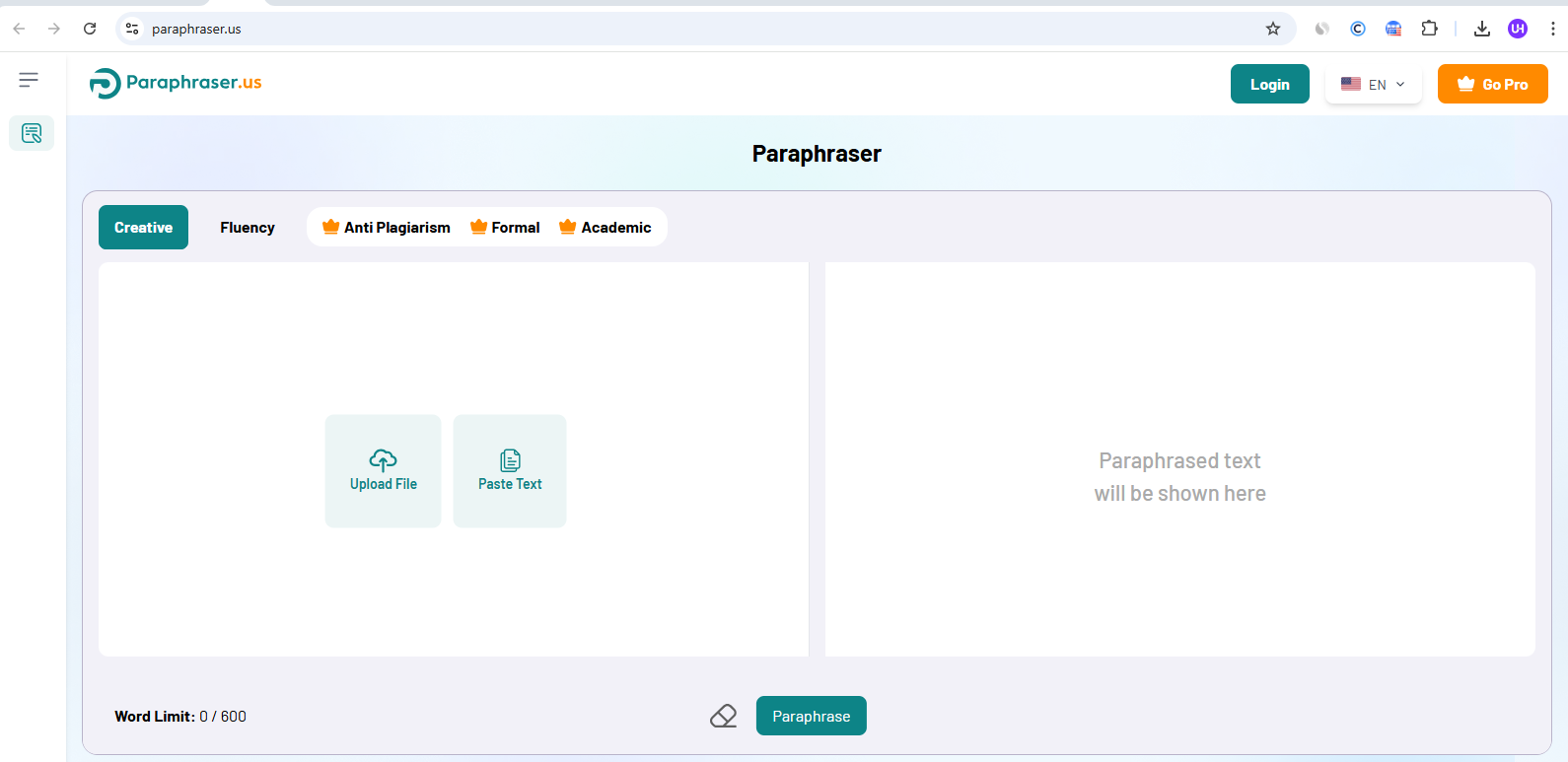 It offers five different paraphrasing modes to meet your specific needs: Creative, Fluency, Anti-plagiarism, Formal, and Academic. Each mode serves a different purpose so that you can adjust your content tone based on your target audience and blogging goals.