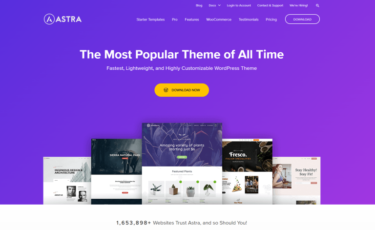 يحتوي قالب Astra على العديد من الميزات التي تجعله أحد أكثر القوالب المثبتة (أكثر من مليون ونصف عملية تثبيت نشطة حالياً). تتكيف صفحات القالب مع جميع أنواع الشاشات ومع معايير تحسين محركات البحث (SEO) إلى جانب التحميل السريع للصفحات والاستجابة السريعة على الهاتف الذكي، وهي معيار أساسي لتحسين الظهور في محركات البحث وخاصة جوجل. تصميمه أنيق ومتوافق مع مواقع التجارة الإلكترونية كونه يدعم بالكامل إضافة WooCommerce. مع مجموعة واسعة من خيارات التخصيص، يحظى قالب Astra بشعبية كبيرة على الإنترنت.