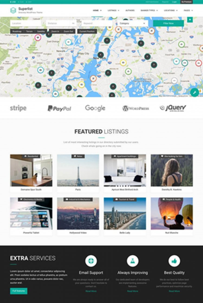 Listify هو قالب مفهرس متعدد الأغراض وسريع الاستجابة ويقدم مظهر أنيق إلى جانب العديد من الميزات الرائعة. يعد القالب من أفضل قوالب ووردبريس المفهرسة المذكورة في هذه القائمة.