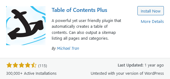 الإضافة سهلة ومستقرة ولديها عدد قليل من الخيارات الأساسية، يمكنك اختيار الحد الأقصى لمستوى تصنيف العناوين التي سيتم تضمينها في جدول المحتويات، وتحديد ما إذا كنت تريد عرض عنوان، واختيار قائمة مرتبة أو عادية. إضافة غير معقدة وبسيطة وفعالة، ما الذي تريده أكثر من ذلك؟