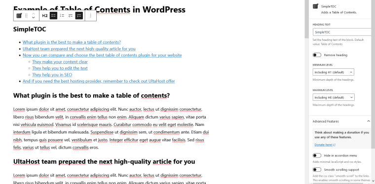 إضافة مميزة من Hero Themes. بجانب الميزات الأساسية التي يجب أن تحتوي عليها أي إضافة لإنشاء جدول محتويات فإنها تحتوي أيضًا على العديد من الميزات الإضافية. الميزة الأساسية هي القدرة على التكامل مع Gutenberg، بحيث يمكنك استخدامه لإنشاء جدول محتويات إذا كنت تعتمد على محرر محتوى ووردبريس المدمج.