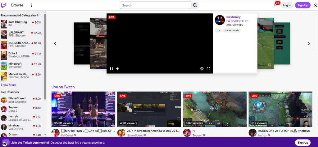 Twitch is the leading platform for live streaming, particularly for gamers, content creators, and entertainment-focused brands. In 2025, it remains the go-to choice for anyone wanting to build communities around interactive live video.